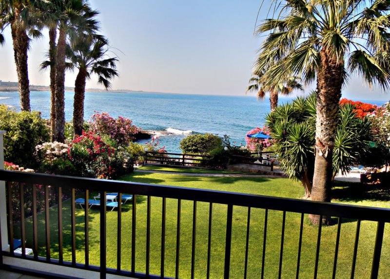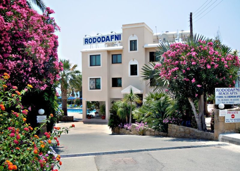 Rododafni Holiday Apartments in Paphos are located right on the beach and surrounded by landscaped gardens. The complex consists of thirteen apartments. There are two studios, seven one bedroom and four two bedroom in the holiday complex. All the apartments have en suite bathrooms, and private sea view balconies. There is satellite TV and Wi-Fi option available. Larger apartments have is satellite TV and Wi-Fi option available. Larger apartments have sitting room room. The kitchens are fully equipped for meal autonomy. One bedroom and two bedroom apartments are ideal for families or group of friends as they sleep 4 to 6 persons. Studios are more convenient for couples with double bed accommodation. At the Rododafni one apartment is particularly designed for people with movement disabilities.