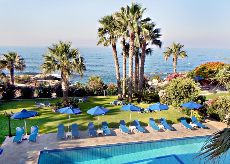 The direct access to the beach is an advantage as swimming in the clear blue Mediterranean water is a holiday must, especially at such proximity. The large swimming pool with sun beds is surrounded by trees and a well-kept garden. Children have their own pool. The area near the Rododafni Holiday apartments is lively while the complex is in a quiet area. Shops and restaurants, banks, mini-markets and other facilities are within walking distance. The Center of Paphos and its harbor are at a 10 minute drive. There are lots to visit specially of cultural interest. Bus stops linking the main areas are within walking distance to the Holiday complex.
